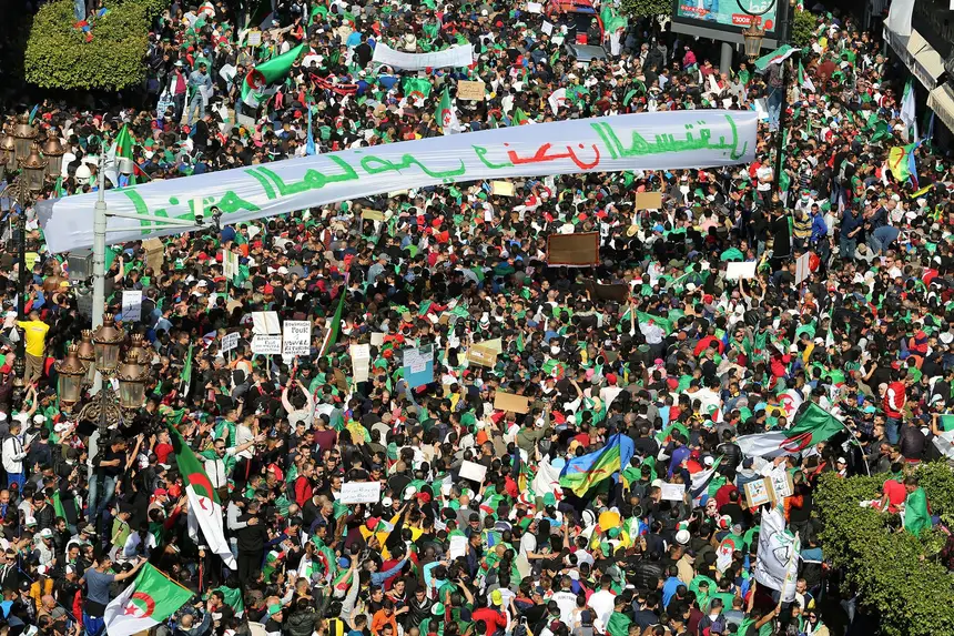 Uma massa de gente nas ruas de Argel a exigir uma nova Argélia