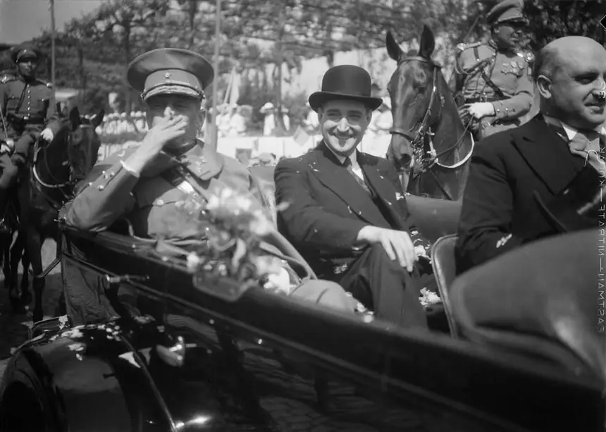 Oliveira Salazar e Óscar Carmona nas comemorações do 10º aniversário do 28 de maio de 1926, em Braga. A data que evoca o golpe 28 de maio só foi feriado nacional duas vezes